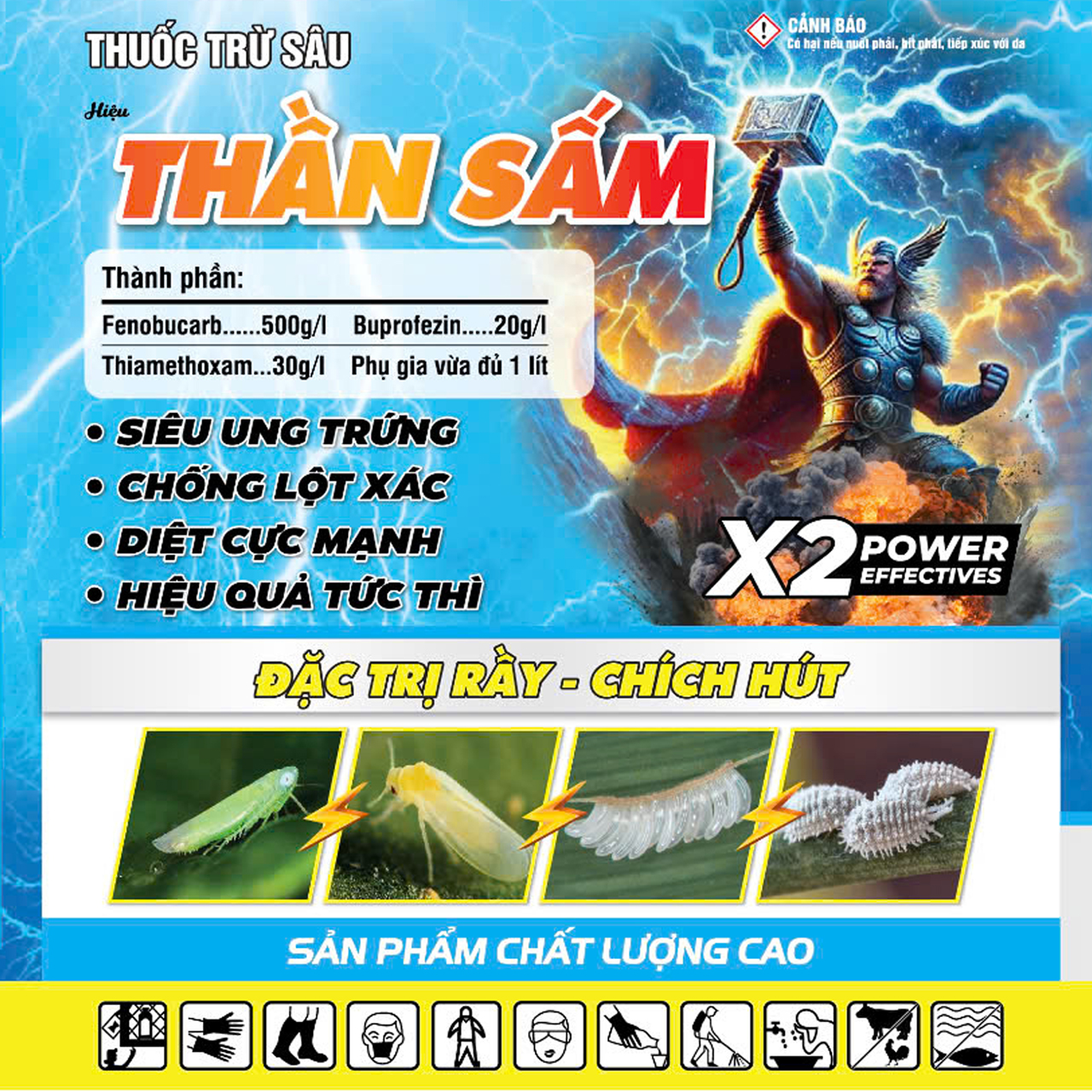 – Sản phẩm thuốc trừ sâu hóa học, cần trang bị bảo hộ đầy đủ khi phun.